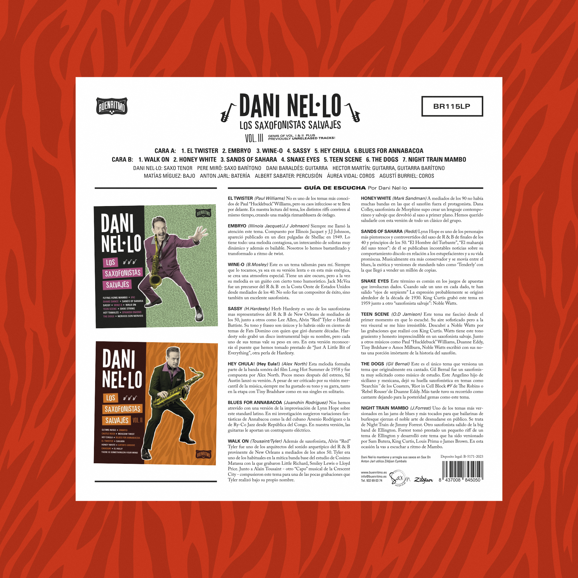 Diseño y maquetación para la edición en vinilo de Los Saxofonistas Salvajes Vol. III. de Dani Nel·lo. El disco era una recopilación de los dos volúmenes previos más nuevas composiciones.
